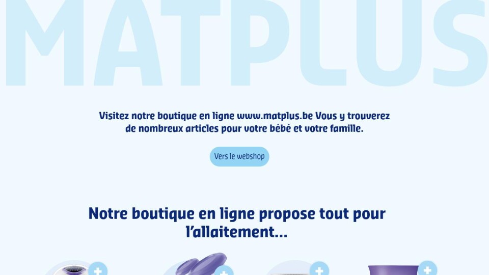 Visitez notre boutique en ligne www.matplus.be Vous y trouverez de nombreux articles pour votre bébé et votre famille.